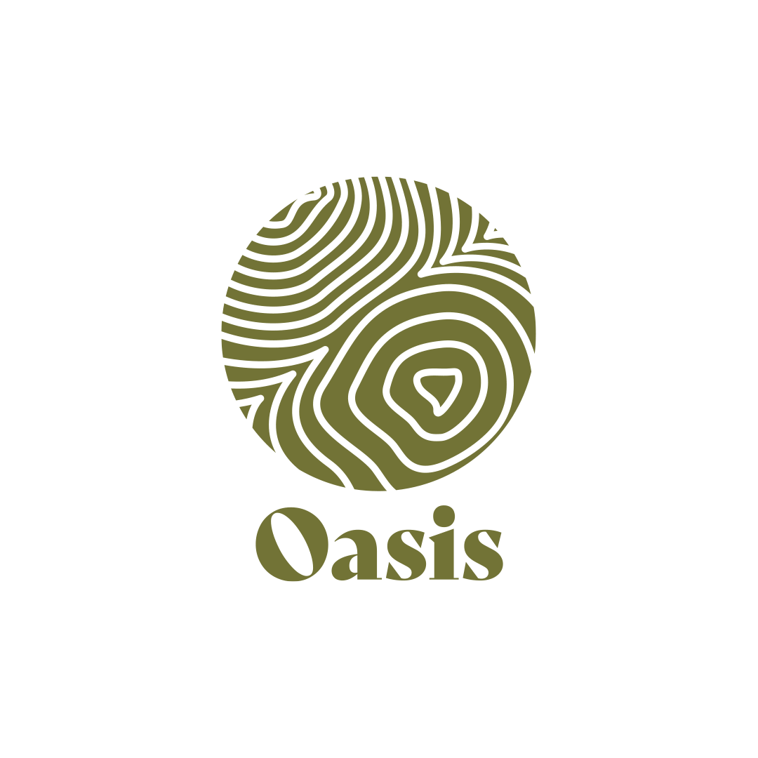 The Oasis logo is a visual representation of our brand's essence. It features a topographic map, symbolizing the concept of an oasis in a desert landscape. The topographic lines evoke a sense of place and discovery, representing the journey of finding a sanctuary amidst the urban sprawl. The logo's earthy tones and organic lines reflect the natural, grounded nature of our café, reinforcing our commitment to creating a peaceful and welcoming environment.