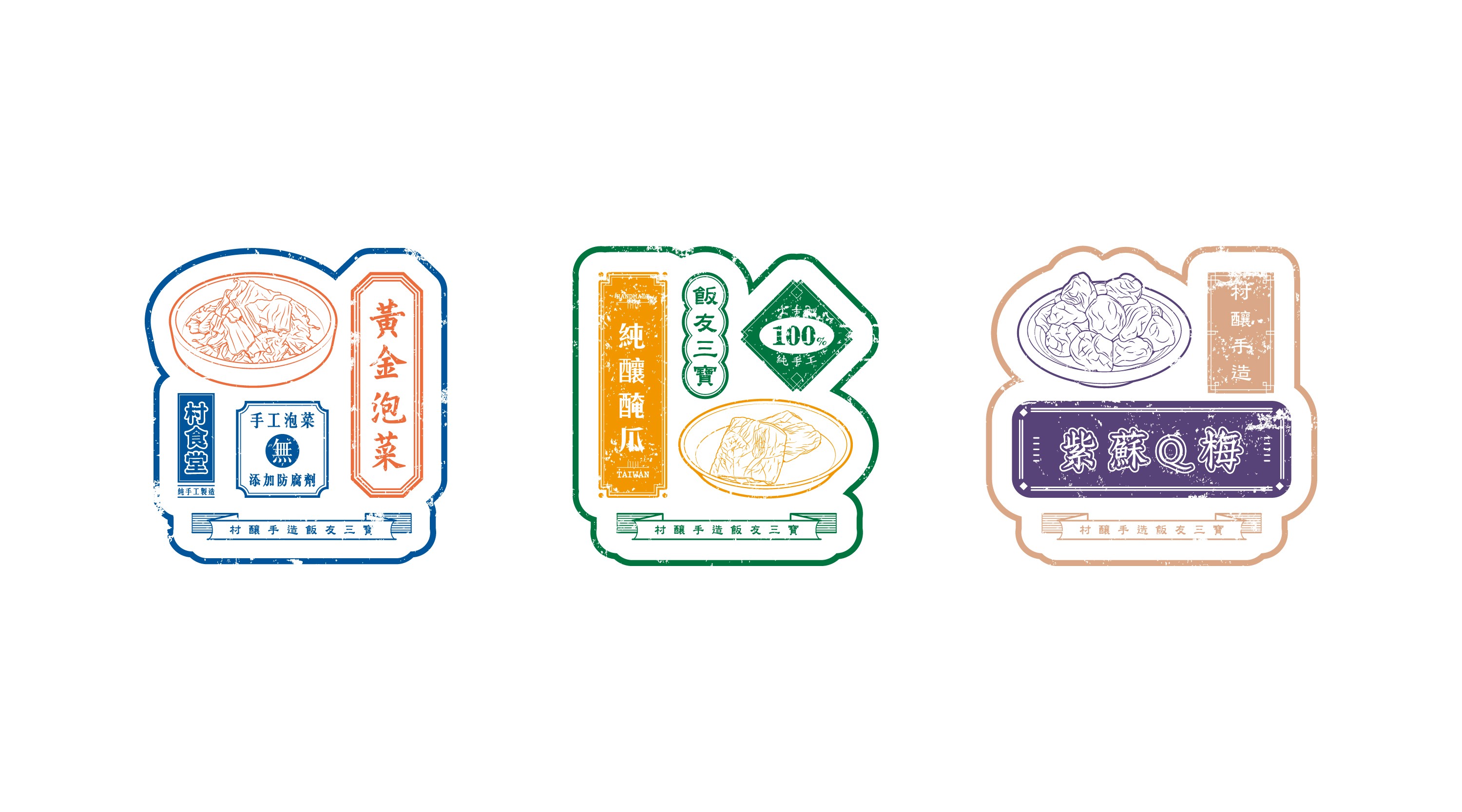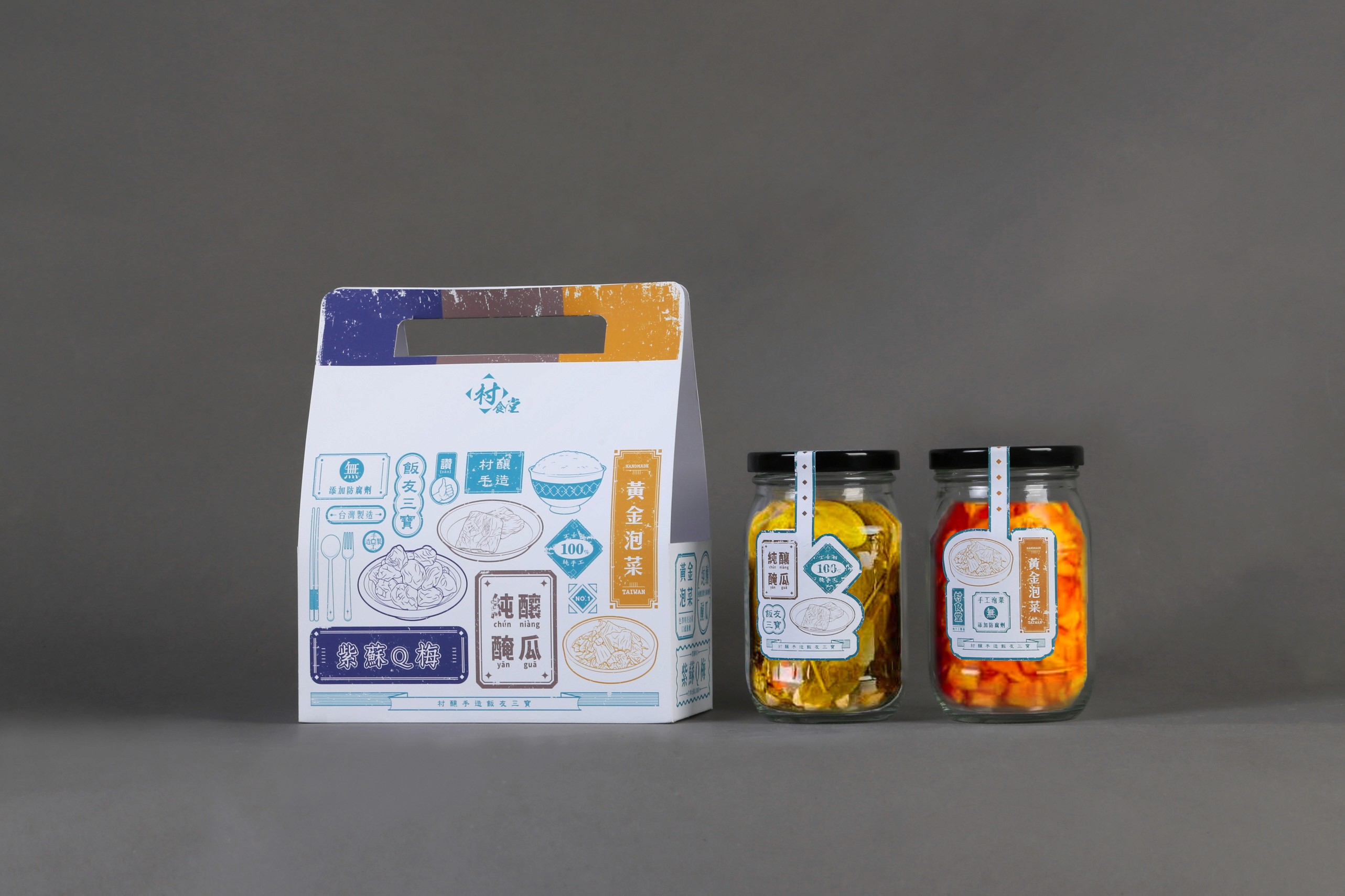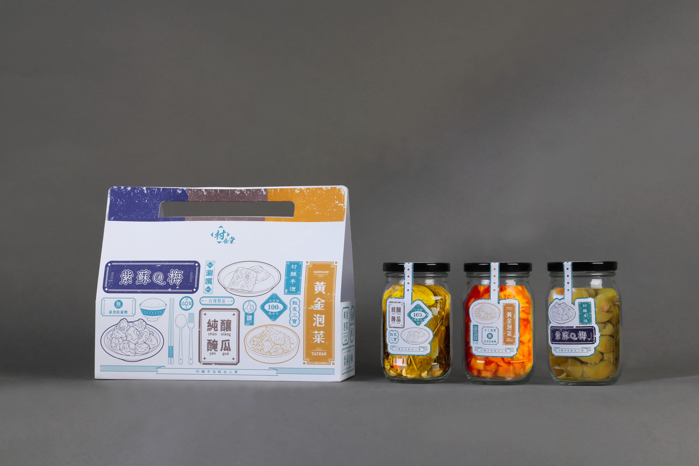 村食堂 is a brand known for its diverse product offerings, the goal was to create a food packaging design that both stood out on the shelf and reflected the unique qualities of each item. Embracing a retro aesthetic, the packaging combines vintage-inspired visuals with detailed illustrations that highlight the essence and distinctiveness of the food within.