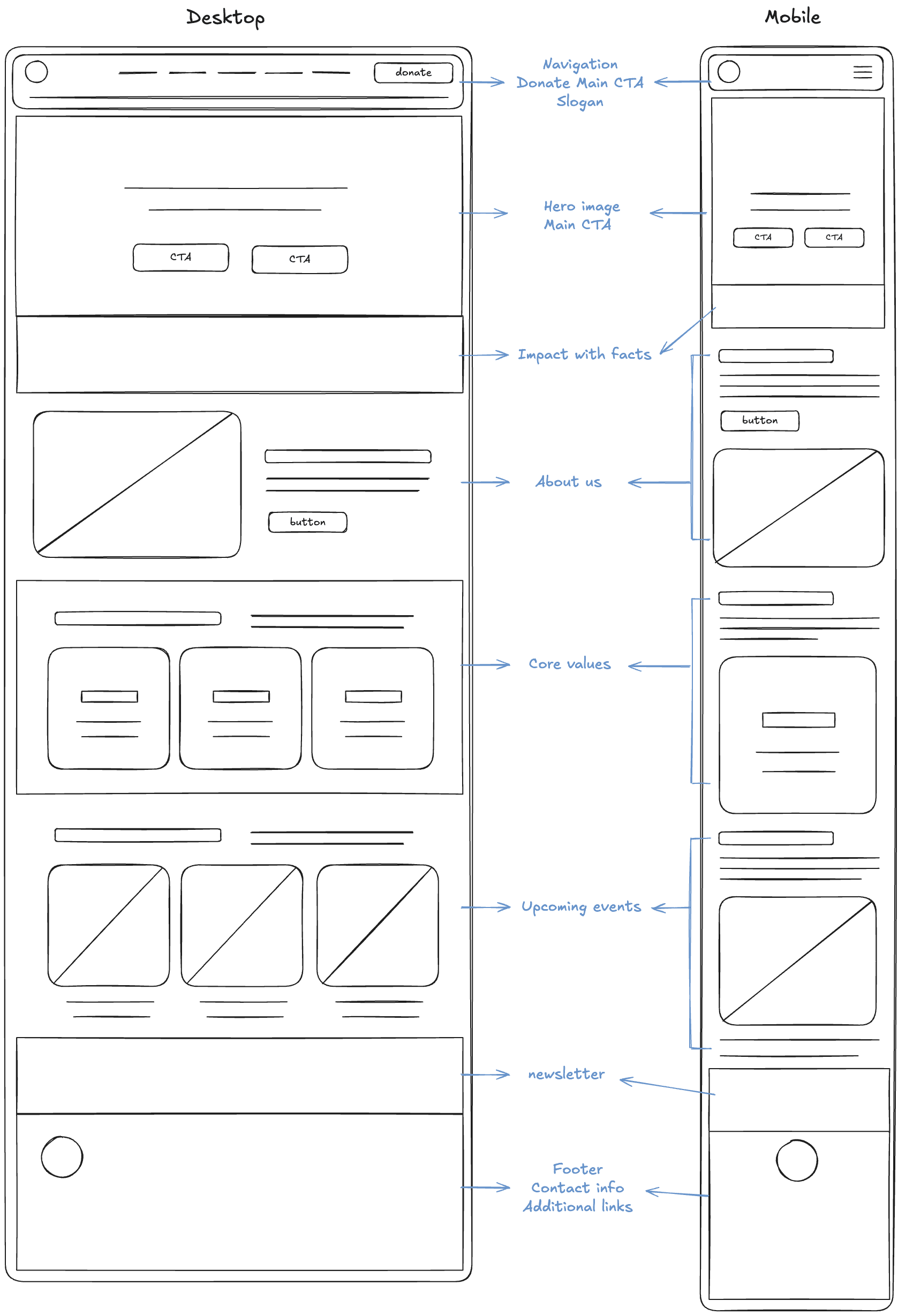 After organizing our research and defining the solution, I began exploring potential designs for the website. We went through several rounds of initial iterations, incorporating feedback to ensure the wireframes addressed all necessary elements effectively.
