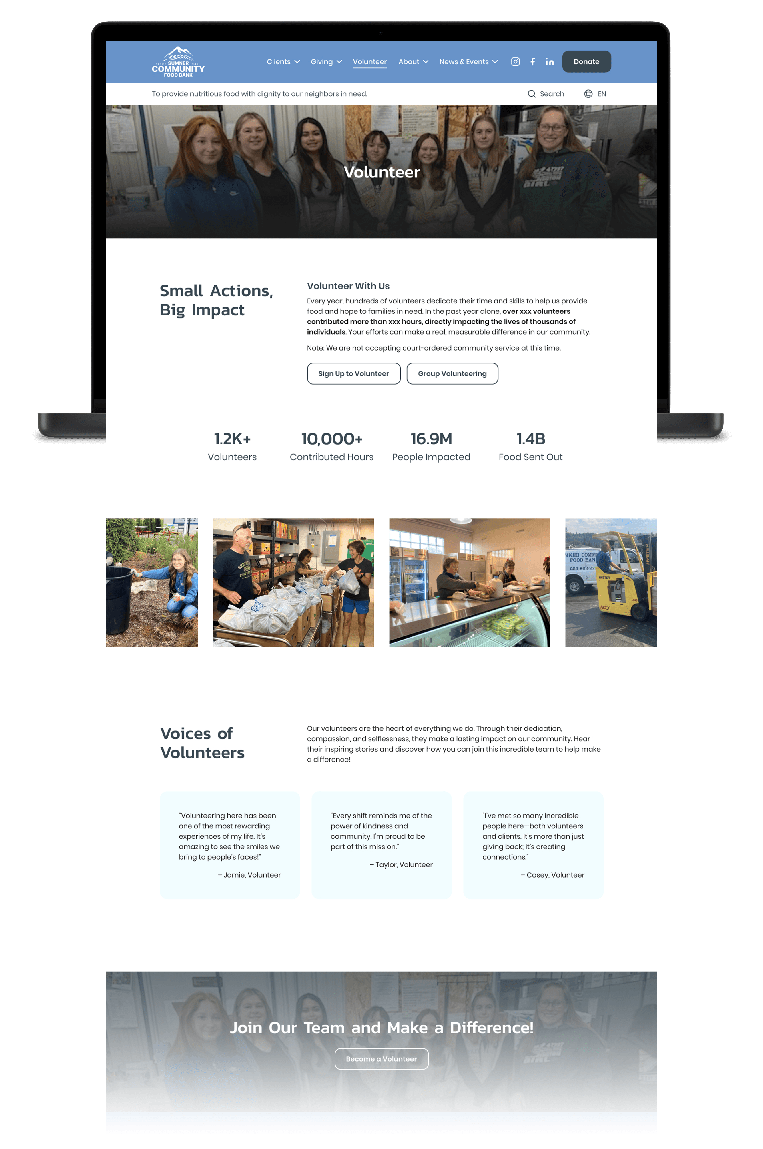 “We need a website that’s more impactful and easy to navigate so we can better serve our clients and inspire our donors, volunteers, and community.”